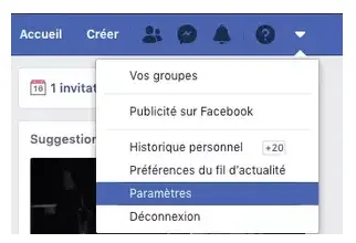 - Ensuite cliquer sur le triangle qui se trouve en haut à droite de votre écran. Veuillez cliquer sur ” paramètres et confidentialité “.