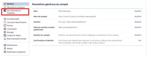 - Ensuite, vous devez cliquer sur ” vos informations facebook “.